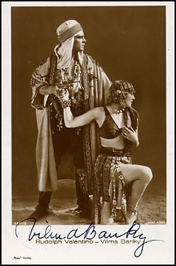 Nice sepia 3.5 x 5.5 postcard photo of Banky posing with Valentino, signed in black ink. In fine condition. RRAuction COA.