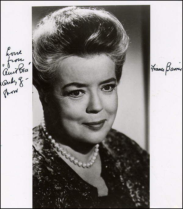 Pleasant glossy 8 x 9.5 photo, signed in black felt tip, 'Love from 'Aunt Bea' Andy G - Show, Frances Bavier.' In fine condition. RRAuction COA.