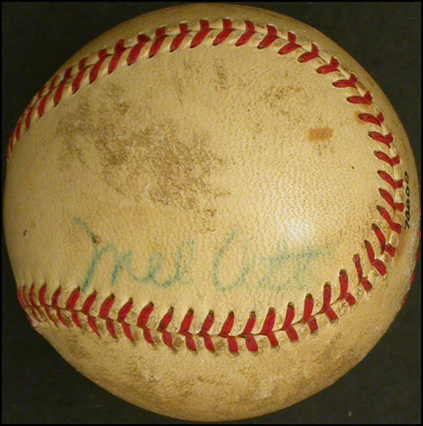 Official Spalding National League baseball signed in ink on a side panel. In good condition, with shelac over signature and scattered light scuffing, soiling and toning to ball. RRAuction COA.