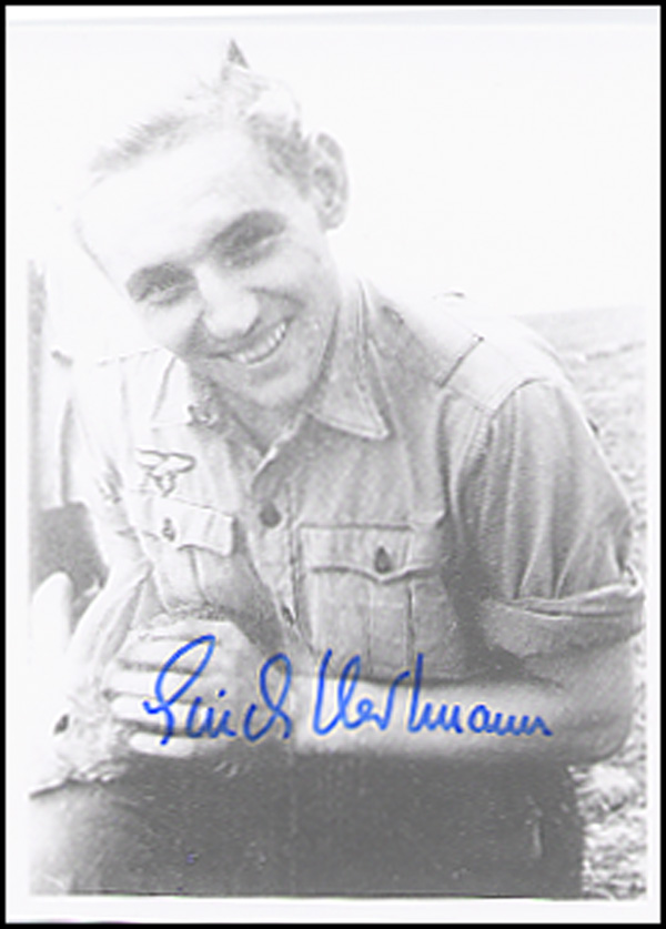 Major and Knights Cross with Diamonds winner; leading ace of all times with 352 victories. Glossy 3.5 x 4.75 photo, signed in blue felt tip. In fine condition. RRAuction COA.