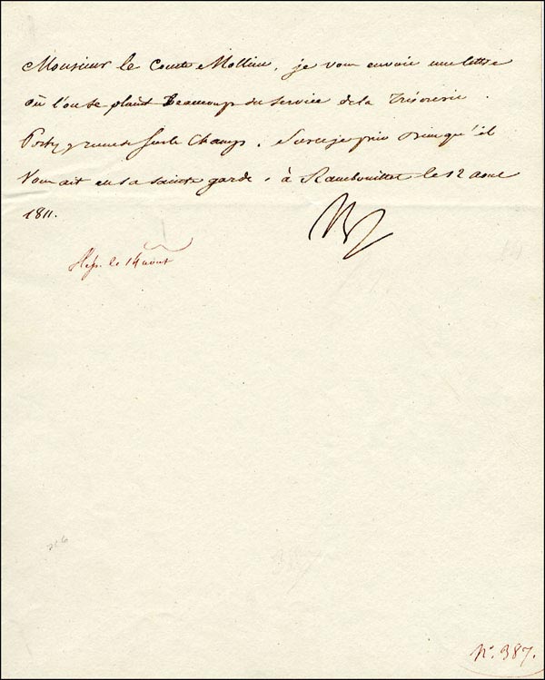 LS in French, signed 'Np,' one page, 7.25 x 9, August 14. Short four line letter to a gentleman. In fine condition, with two small notations to bottom edge. COA John Reznikoff/University Archives and RRAuction COA.