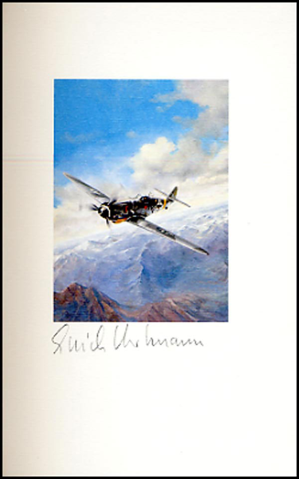 Signed book: The Blond Knight Of Germany. Pennsylvania: Tab Aero, 1970. Hardcover, 6.25 x 9.5, 332 pages. Signed in pencil on the second free end page bearing a color image of of Hartmann in flight. In fine condition. RRAuction COA.