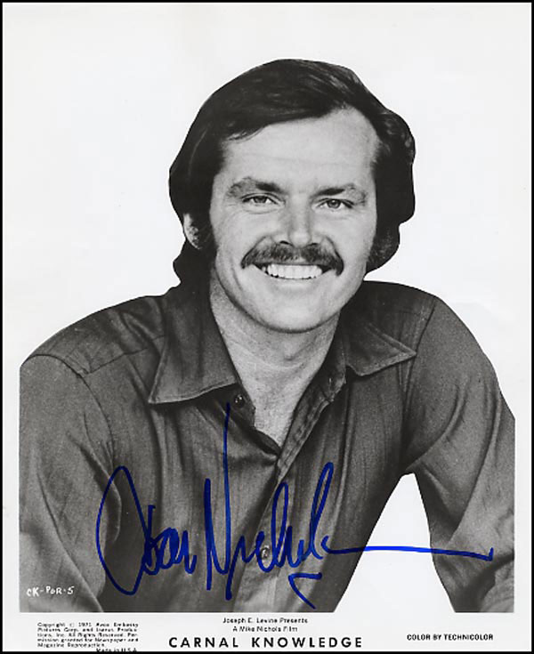 Glossy 8 x 10 Avco Embassy promotional photo for Carnal Knowledge, signed in blue felt tip. In fine condition. RRAuction COA.