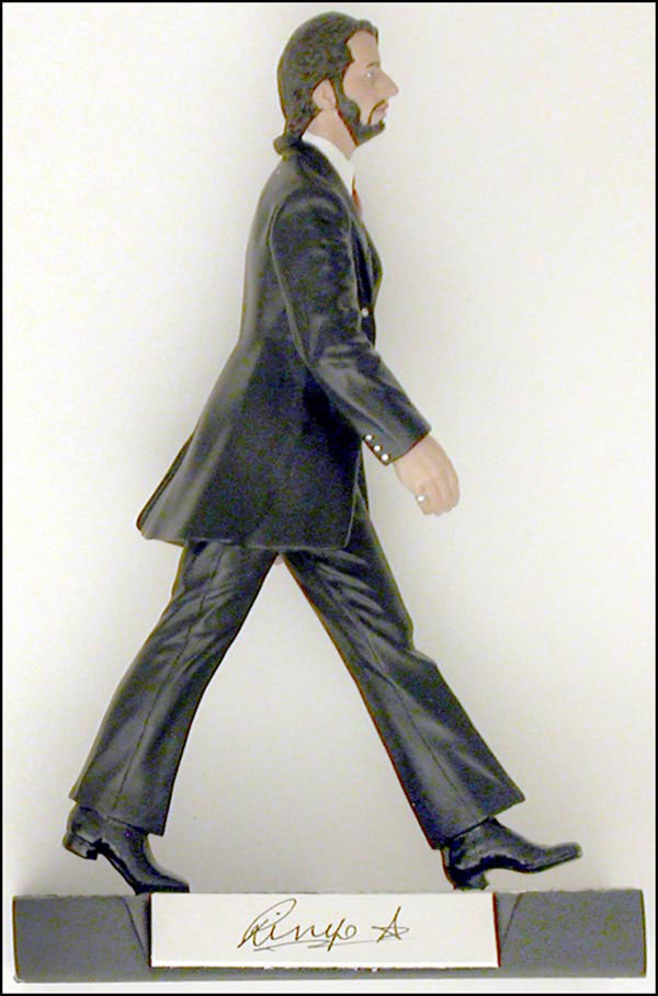Limited edition, number 910/1000, Gartlan figurine of Starr in the famous Abbey Road pose. The 9.75 inch high figurine rests on a stand that looks like a portion of the crosswalk, cobblestones and all, which bears a front plaque signed 'Ringo.' In fine condition. Accompanied by a certificate of authenticity from Gartlan USA and RRAuction COA.
