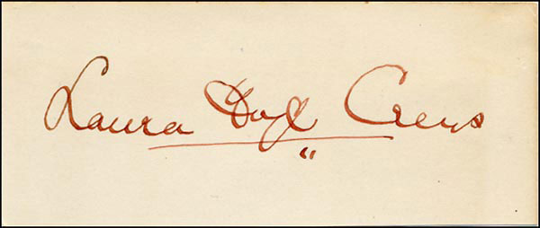 Aunt Pitty Pat in Gone With the Wind, she died three years later in 1942. Rare vintage fountain pen signature, 'Laura Hope Crews,' on an off-white 4 x 1.75 slip. In fine condition. RRAuction COA.