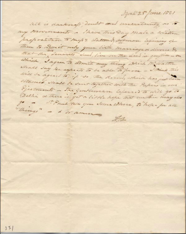 Controversial US vice-president, who killed Alexander Hamilton in a duel in 1804. ALS signed 'A. B.,' one page, 7.75 x 10, June 25, 1821. Letter to a client. In part, 'All is darkness; doubt and uncertainty as to my movements - I have this day made a written proposition to Messr. Walton and Hoffman...on which I agree to admit anything which Mr. Walton shall say he expected to be able to prove - I think this will be agreed to, if so, the record, which has just been obtained, should be sent together with the Papers in our Ejectments.' Text a bit faded, but completely legible, several notations to integral address panel and expected folds, otherwise fine condition. RRAuction COA.