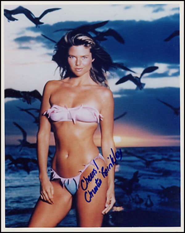 Color glossy 8 x 10 photo of the bikini clad Brinkley on the beach at sunset, signed in blue felt tip. In fine condition. RRAuction COA.