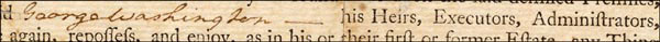 Magnificent signature on a 5.75 x .5 sheet clipped from a longer document which reads, in part, "can or may be found in or upon said demised Premises, his Heirs, Executors, Administrators..." Absolutely perfect for display. In fine condition. RRAuction COA.