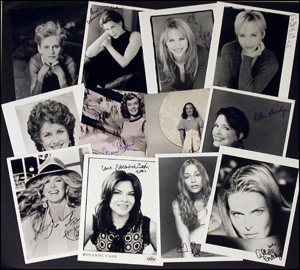 Lot of thirty satin-finish 8 x 10 photos, each signed in ink or felt tip by the respective actress pictured. Signers are: Andrea Thompson, Wendie Malick, Karen Witter Lorre, Charlotte D'Ambrose, Judy Kazan, Vera Miles, Ann Blyth, Ellen Burstyn, Connie Stevens, Rosanne Cash, Pip Perabo, Catherine Oxenberg, Jo Stafford, Carmel Quinn, Marlo Thomas, Abbe Lane, Melanie Mayron, Eva LaRue, Beverly Sassoon, Louise Currie, Kathy Najimy, Wendy Liebman, Jasmine [Guy], Linda Evans, Marsha Mason, Gale Storm, Pamela Roylance, Joanne Woodward, Loni Anderson and Alice Ripley. In fine condition. RRAuction COA.