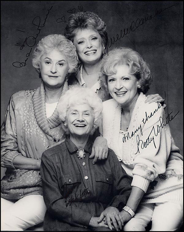 Cardstock 8 x 10 cast photo, signed in black felt tip by all four cast members: Bea Arthur, Betty White, Estelle Getty, and Rue McClanahan. In fine condition. RRAuction COA.