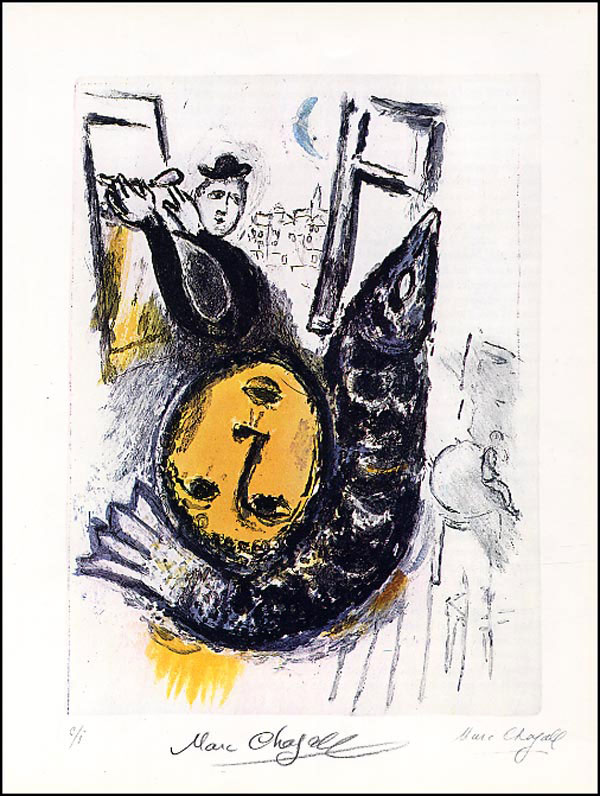 Color 10 x 13 print of one of Chagall's works, signed in the lower border in black artist's pencil. In fine condition. RRAuction COA.