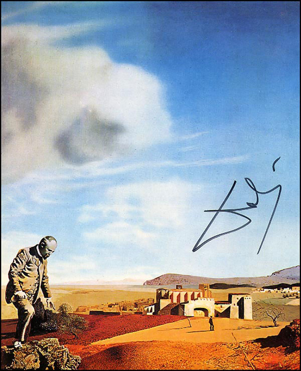 Interesting color 9.75 x 12 book photo of one of Dali's works, signed in black felt tip, 'Dali.' In fine condition. RRAuction COA.