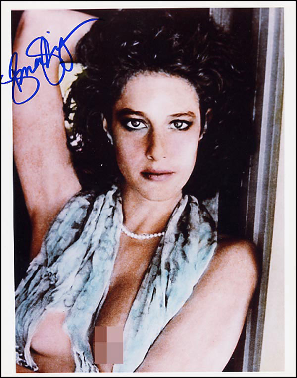 Color glossy 8 x 10 nearly topless photo of Winger draped in a skimpy scar, signed in blue felt tip. In fine condition. RRAuction COA.