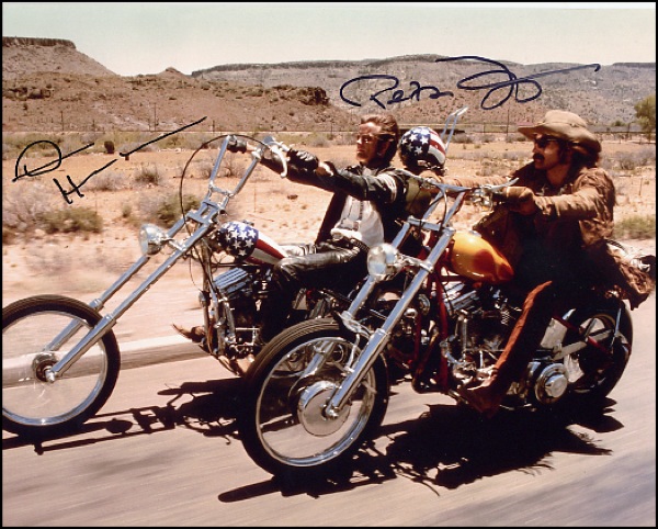 Color glossy 10 x 8 photo from the film, signed in black felt tip by Dennis Hopper and Peter Fonda. In fine condition. R&R COA.