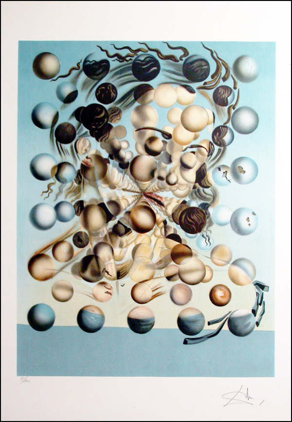 Lovely color limited edition 21 x 30 lithograph of one of Dali's works depicting a female face with a myriad of spheres, numbered number 80/300, signed in the lower border in pencil, 'Dali.' In fine condition. RRAuction COA.
