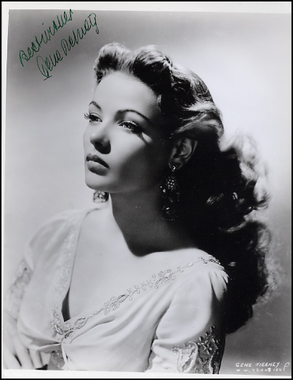 Lot of four signed 8 x 10 photos, three glossy and one satin-finish, of Tierney from various points in her career, each signed in ink or felt tip by Tierney. In fine condition, with a few scattered surface marks and creases. R&R COA.