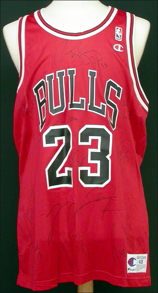 Bulls Jersey Signed by Jordan, Jackson, Pippen and Nine Others