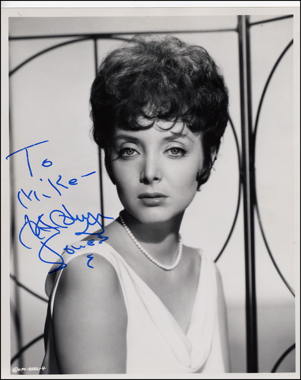 Actress best remembered for her role as Morticia on the sitcom The Addams Family. Lovely glossy 8 x 10 photo, signed and inscribed in blue felt tip “To Mike - Carolyn Jones.” In fine condition, with a few scattered surface impressions. R&R COA.
