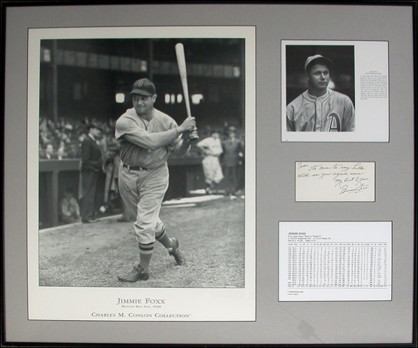 ANS, one page, 7 x 3.5, no date. Short note to a friend. In full, “It’s nice to say hello - Will see you again soon - My Best to you - Jimmie Foxx.” Impressively matted and framed with a large print of Foxx, a smaller photo and his career stats, to an overall size of 37 x 31. In fine condition. COA Steve Grad/PSA/DNA and R&R COA.
