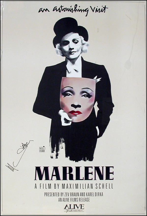 Color 27 x 40 one sheet movie poster for Marlene, signed in black felt tip. In fine condition, with some scattered dings and creases to edges. Rolled. R&R COA.
