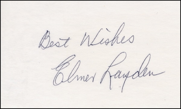 Football player and coach. He was one of the famous “Four Horsemen” of Notre Dame. Ballpoint signature, “Best wishes, Elmer Layden,” on an off-white 5 x 3 card. In fine condition. R&R COA.