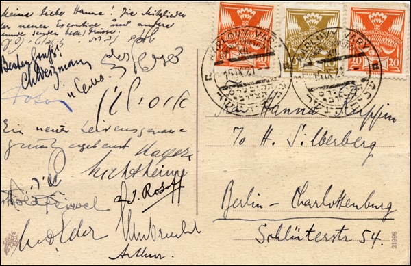Jewish statesman and president of Israel. He studied in Germany and Switzerland, then lectured on chemistry at Geneva and Manchester universities. He helped to secure the Balfour Declaration of 1917, and became president of the Zionist Organization and of the Jewish Agency. He played a major role in the establishment of the state of Israel, and was its first president. Color vintage 5.5 x 3.5 postcard photo of Karlsbad, sent to Manna Rupin, wife of Zionist Arthur Rupin, signed on the reverse in fountain pen by several members of the Zionist Congress, including Weizmann, Arthur Rupin, Usishkin and Rosoff, with the two latter signing in Hebrew. Another of those signing in Hebrew is Zabotinsky. He was one of the most important Zionist leaders who participated at the Zionist congress. He is well known as the person who founded the Likud party of today. In fine condition, with a light horizontal crease and some even light toning. COA John Reznikoff/PSA/DNA and R&R COA.