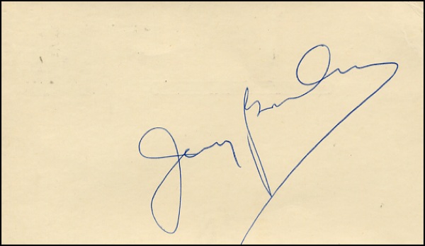 Ballpoint signature, “Irving Berlin,” on an off-white 5.5 x 3.25 government postcard. In fine condition, with trivial show through from postmark on reverse. R&R COA.