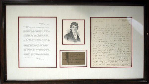 Baltimore lawyer who was inspired to write The Star Spangled Banner after he witnessed the bombardment of Fort McHenry by the British in 1814. ALS signed “F. S. Key,” one page, 8 x 10, February 20, 1815. Letter to Thomas Biddle. In full, “Your cause will be called I presume in two or three weeks, but if the trial is not pressed by your opponent, it can be continued till the next Term - nor is it likely he would object to the continuance - I observe no Consul has yet entered an appearance for it. If it is thus put off till the next Term, it will afford you the means of comprising it, if you think you can do so on advantageous terms. As to your Success, I think it as certain as any thing undecided I can conceive of can be. Not only is it a very plain case in your favour, as I think, but two of the Judges of the Sup Court - Washington & Story have both so adjudged the point on which it chiefly depends. They would not, at least Story would not, of course sit in the cause, but their opinions would have weight; & it is to be presumed their decision would be confirmed by the other Judges. I should think the question so important on one to Insolvents in the different States that they would pay the debt sooner than risque a trial. Judge Washington has given me his opinion but if you have a paper containing it you may send it.” Reverse bears an integral address panel, addressed in Keyss hand, with his signature “F. S. Key,” appearing above address panel. Double cloth matted and framed with a portrait of Key, a transcript of the letter and a small plaque, to an overall size of 29.5 x 17. In fine condition, with some scattered light toning and soiling, expected folds and a few wrinkles. COA John Reznikoff/PSA/DNA and R&R COA. Oversized.