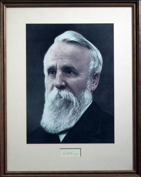 Fountain pen signature, “R. B. Hayes,” on an off-white card. Matted and framed with a large color portrait of Hayes, to an overall size of 15 x 19.25. In fine condition. R&R COA.