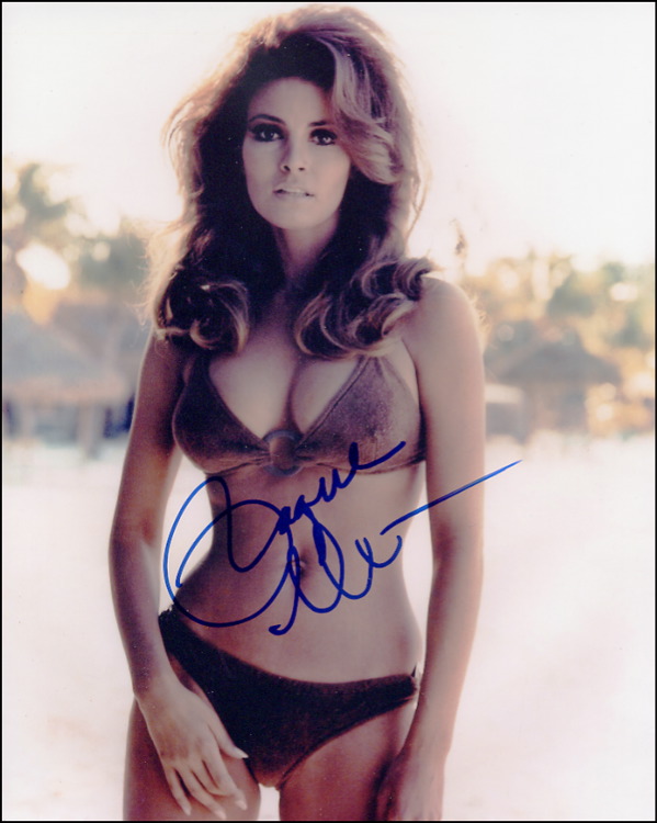 Stunning color glossy 8 x 10 photo of Welch in a brown bikini, signed in blue felt tip. In fine condition. R&R COA.
