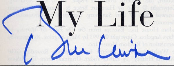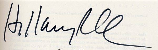Lot of two signed hardcover books. Living History, signed on the title page in black felt tip by Hillary Clinton and My Life, signed on the title page in blue felt tip by Bill Clinton, accompanied by the original bookstore receipt and signing ticket. Accompanied by a new article on the original recipient, who trades four leaf clovers for signatures, two of which are included as well. In fine condition. R&R COA.