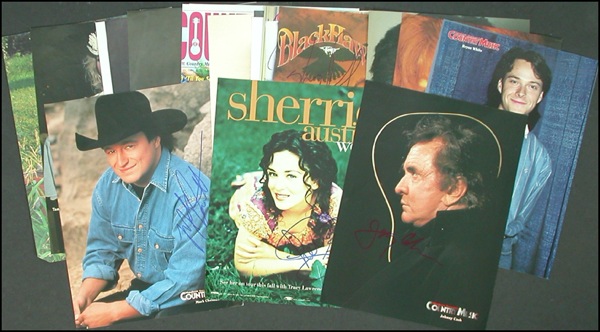 Fantastic lot of twenty-two color 8 x 11 magazine photos of different country artists, each signed in felt tip by the respective artist pictured. Includes: Tanya Tucker [2], Neal McCoy, Terri Clark, Martina McBride, Brooks and Dunn, Reba McEntire, Lorrie Morgan, Trisha Yearwood, Patty Loveless, Jo Dee Messina, Diamond Rio, Pam Tillis, Blackhawk, Joe Diffie, Mark Chesnutt, Sherrie Austin, Bryan White, Wynonna Judd, Vince Gill, Johnny Cash, and Tim McGraw. In overall fine condition, with slightly rough edge where removed from magazines. R&R COA.