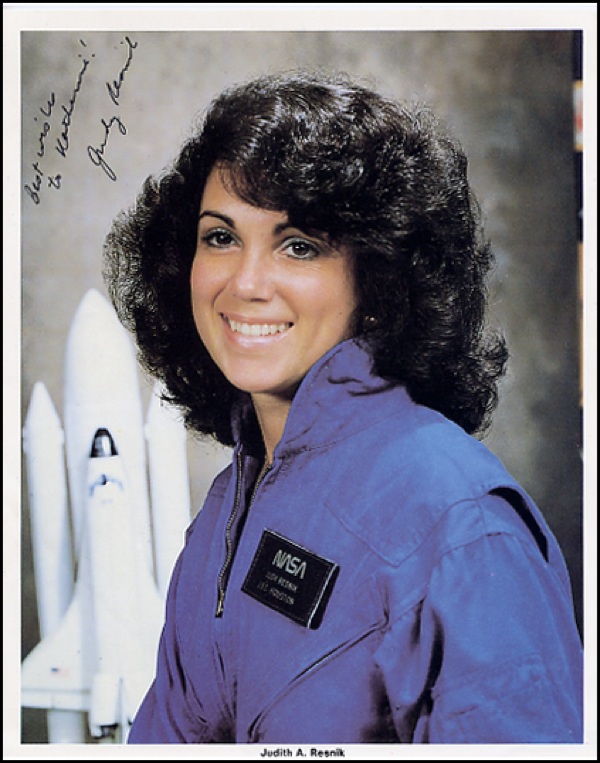 Official NASA color glossy 8 x 10 portrait of Resnik in her uniform, signed and inscribed in black felt tip “To Katherine.” In fine condition. R&R COA.