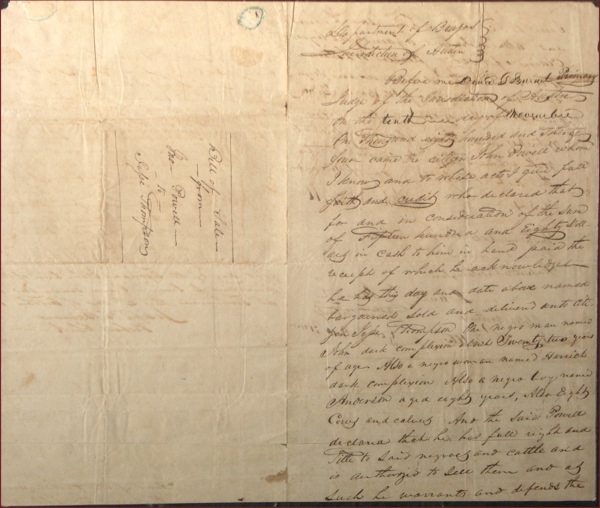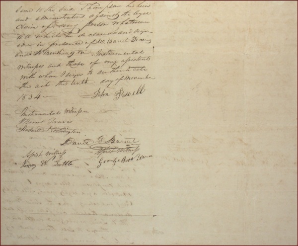 Just months before taking arms against Mexico, Wm. Barret Travis and David G. Burnet witness the sale of slaves by John Powell, first person to alert Sam Houston of Santa Ana's whereabouts after The Alamo.