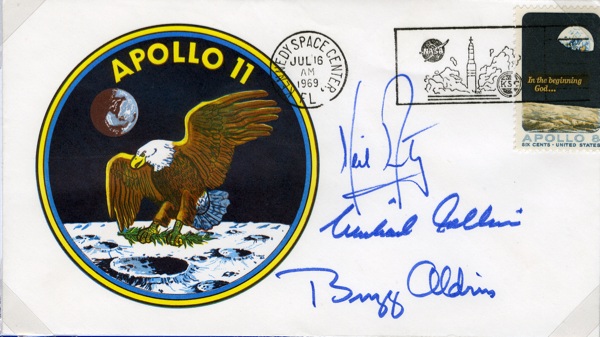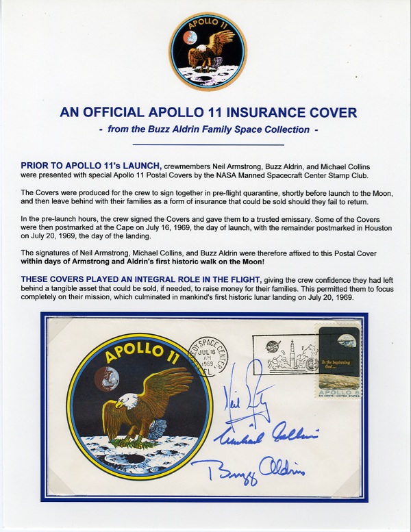 Apollo 11 insurance cover signed in quarantine, en route to the moon