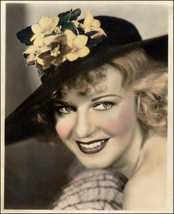 Color-tinted vintage matte-finish 8 x 10 photo of Rogers in an eye-catching hat, signed and inscribed in green fountain pen. In fine condition, with scattered light silvering to darker areas and a bit of trivial border soiling. R&R COA.