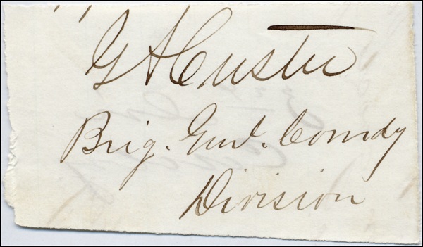 Excellent ink signature, “G. A. Custer, Brig. Genl. Comdg Division,” on a slightly irregular off-white 3 x 1.75 slip. Nicely archivally double suede matted and framed, with a photo of Custer with his arms folded, to an overall size of 15 x 22.5. In fine condition, with light show through from text on reverse and a closely trimmed top edge just touching Custer’s middle initial. COA John Reznikoff/PSA/DNA and R&R COA.