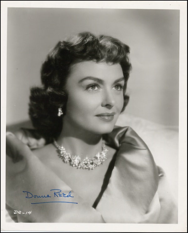 Truly lovely glossy 8 x 10 portrait of the actress wearing a large satin collar, diamond earrings and a diamond necklace, signed in fountain pen. In fine condition, with a few scattered surface impressions, a faint paper clip impression to the upper left corner. R&R COA.