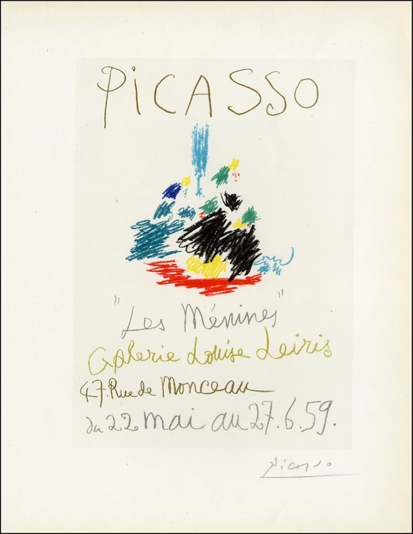 Color 9.5 x 12.5 lithograph entitled Les Ménines from Mourlot’s Original Posters book in 1959, signed in pencil, “Picasso.” In fine condition, with a bit of mild edge toning. R&R COA.