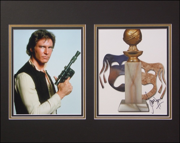 Color program cover from the 2002 Academy Awards, 8.5 x 11, triple matted with a color 8 x 10 photo of Ford as Han Solo, to an overall size of 20 x 16. In fine condition. R&R COA.
