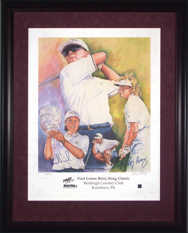 Color limited edition 17 x 22.5 lithograph entitled the First Union Betsy King Classic, numbered #132/200, signed in blue felt tip. Also signed in pencil by the artist, Jerry Thierolf. Double suede matted and framed to an overall size of 25 x 31. In fine condition. COA Steve Grad/PSA/DNA and R&R COA. Oversized.