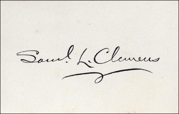 Vintage fountain pen signature, “Saml. L. Clemens,” on an off-white 3.5 x 2.25 card. In fine condition. R&R COA.