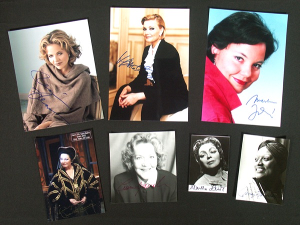 Lot of seven signed photos, ranging in size from 4 x 6 up to 8.5 x 12, including four color, each signed in ink or felt tip by the respective diva pictured. Signers are: Martha Modl, Jessye Norman, Leoniery Sanek, Montserrat Caballe, Renee Fleming, Karita Mattila and Martina Jankova. In fine condition. R&R COA.
