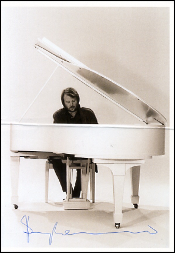 Lot of four photos (three color) ranging in size from 4 x 6 to 6 x 8, each signed in ink or felt tip by the band member pictured: Benny Andersson, Agnetha Fältskog, Frida Lyngstad, and Björn Ulvaeus. In fine condition, with mild soiling to Agnetha and horizontal crease to Benny, away from signature. R&R COA.