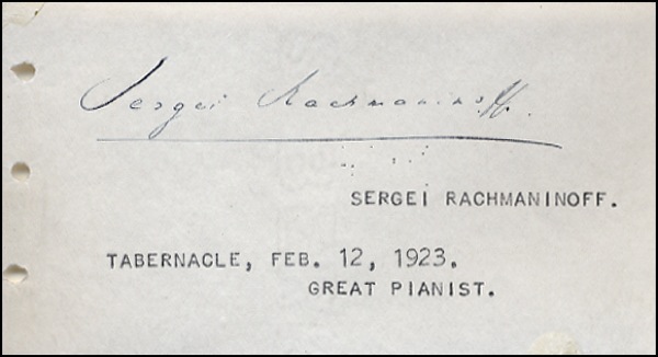 Vintage fountain pen signature on a white 5 x 2.75 page. In fine condition, with punch holes to left edge, two small areas of adhesive residue in the borders, collector’s typed notations. R&R COA.
