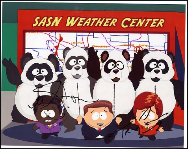 Very funny color glossy 10 x 8 photo from South Park, signed in black felt tip by creators Trey Parker and Matt Stone. In fine condition. R&R COA.