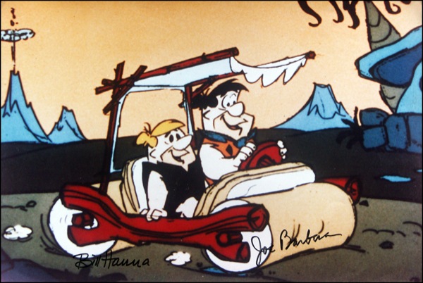 Oversized color glossy 17.75 x 12 photo of Fred Flintstone and Barney Rubble, signed in black felt tip. In fine condition, with scattered dings and mild bends. R&R COA.
