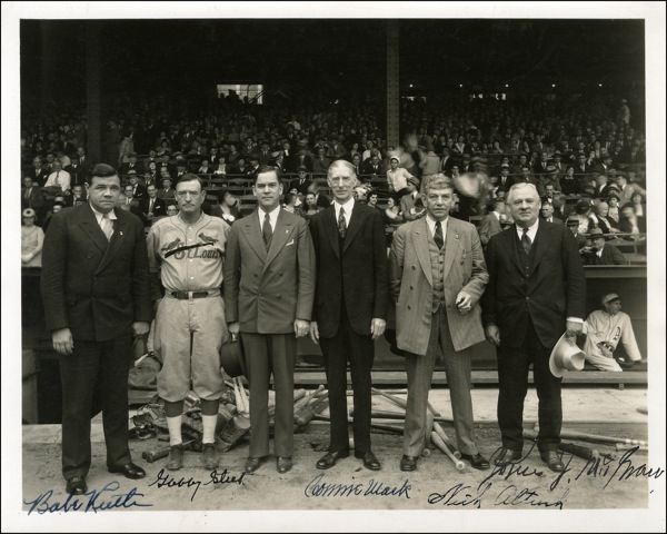 Babe Ruth, Connie Mack, John G. McGraw and Gabby Street at the World Series