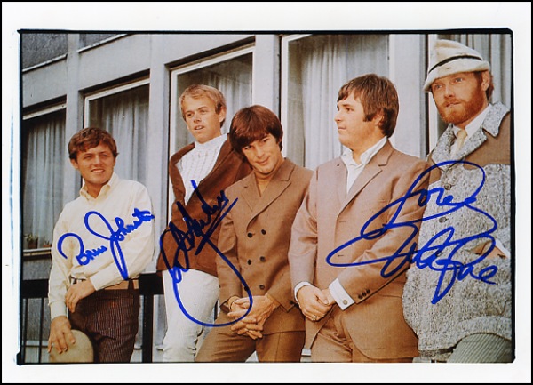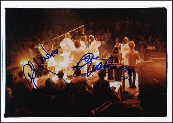 Lot of two different color glossy 11 x 8 photos, each signed in blue felt tip Bruce Johnston, Mike Love and Al Jardine. In fine condition. R&R COA.