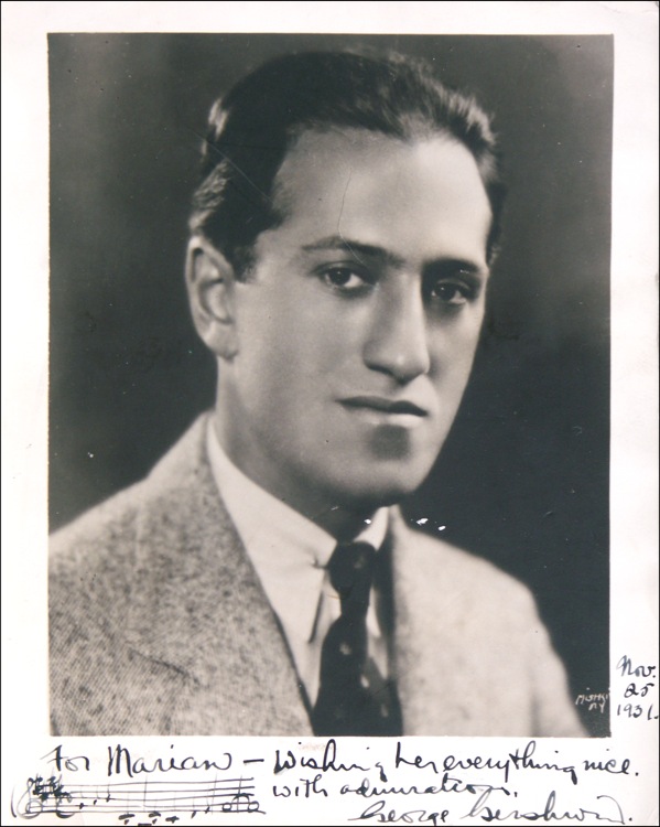 A showgirl’s souvenir: Gershwin signs a handsome portrait, adding a quotation from Rhapsody in Blue